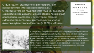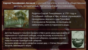 - Аксаков был не только писателем, но и общественным деятелем, критиком, активно участвовал в культурной жизни.